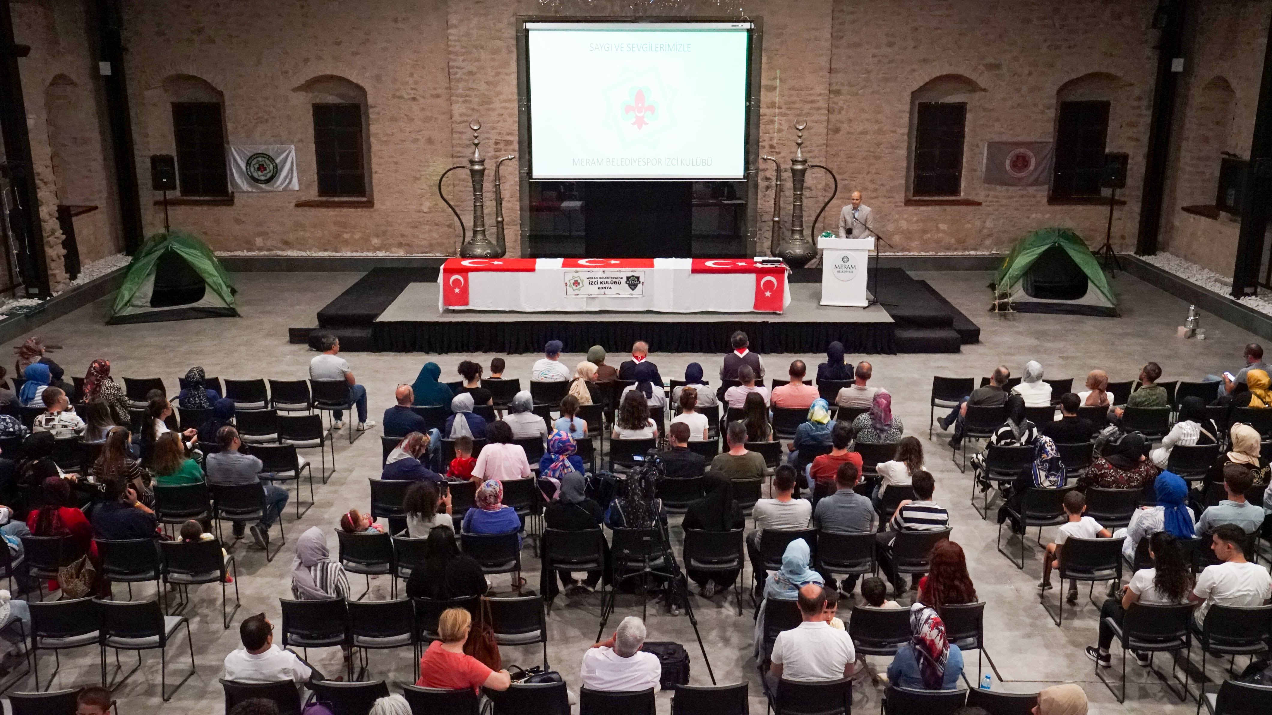 İstiklal Marşı ve saygı duruşu ile başlayan törende genç izciler, aldıkları eğitimlerden örnekler verdi, izci marşları söyledi. İzcilik Konya İl Temsilcisi Mahmut Keten törende yaptığı konuşmaya, kendilerine verdiği değer ve destekten dolayı Meram Belediye Başkanı Mustafa Kavuş’a teşekkür ederek başladı. Başkan Kavuş’un da gençliğinde izcilik yapan bir isim olduğunu hatırlatan Keten, bunun bir yansıması olarak Başkan Kavuş’un Meram izciliğinin önünü açtığını belirtti. İzciliğin iyi birer insan yetiştirmek için kurulmuş 117 yıllık bir gençlik teşkilatı olduğuna vurgu yapan Keten, “İzcilik, okul dışında yaparak ve yaşayarak hayatı öğrenmektir. Bedenen sağlam ve ahlaken dürüst bireyler yetiştirmeyi amaçlar” diye konuştu. “MERAM BELEDİYESPOR GENÇLERE YOL VE YÖN GÖSTERİYOR”