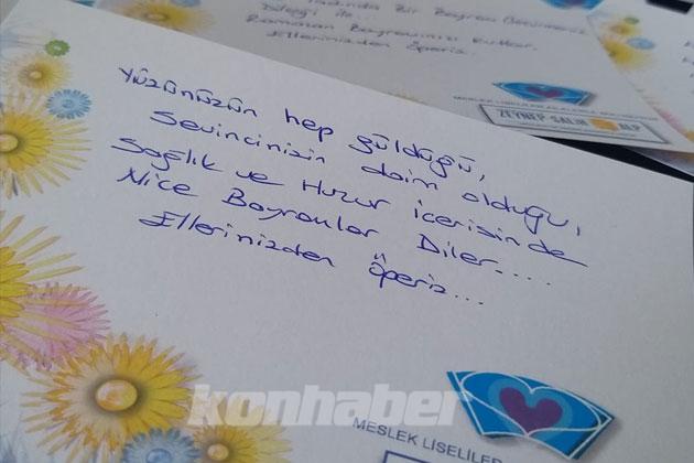 Okul Müdürü Serap Yaman, hazırladıkları kartları huzurevi sakinlerine ulaştırdıklarını belirterek, “Ankara Yenimahalle Zeynep-Salih Alp Mesleki Ve Teknik Anadolu Lisesi olarak ‘Meslek Lisesi Öğrencileri Ailelerle Buluşuyor Projesi’ kapsamında ‘Bu Ailede Bende Varım Sloganımız’ ile Demetevler Fatma Üçer Huzurevi Yaşlı Bakım ve Rehabilitasyon Merkezi Müdürlüğü ile yapılan işbirliği çerçevesinde 74 huzur evi sakini büyüklerimize tebrik kartı hazırladık. Okulumuz öğrenci ve öğretmenleri ile huzurevinde ikamet eden büyüklerimize öğrencilerimiz tarafından geçmişin nostaljisini yaşatmak, büyüklerimize saygı ve sevgimizi göstermek gibi amaçlarla hazırlamış olduğumuz Ramazan Bayramı tebrik kartlarımız, tamamen el emeği olan anahtarlık, yaka iğneleri, kitap ayraçları ve bayram şekerleri kendilerine teslim edilmiştir. Bununla birlikte 157 hayırsever, öğrencilerimiz ile buluşturulmuştur. Emeği geçen herkese teşekkür eder saygı ve selamlarımı sunarım.” dedi.