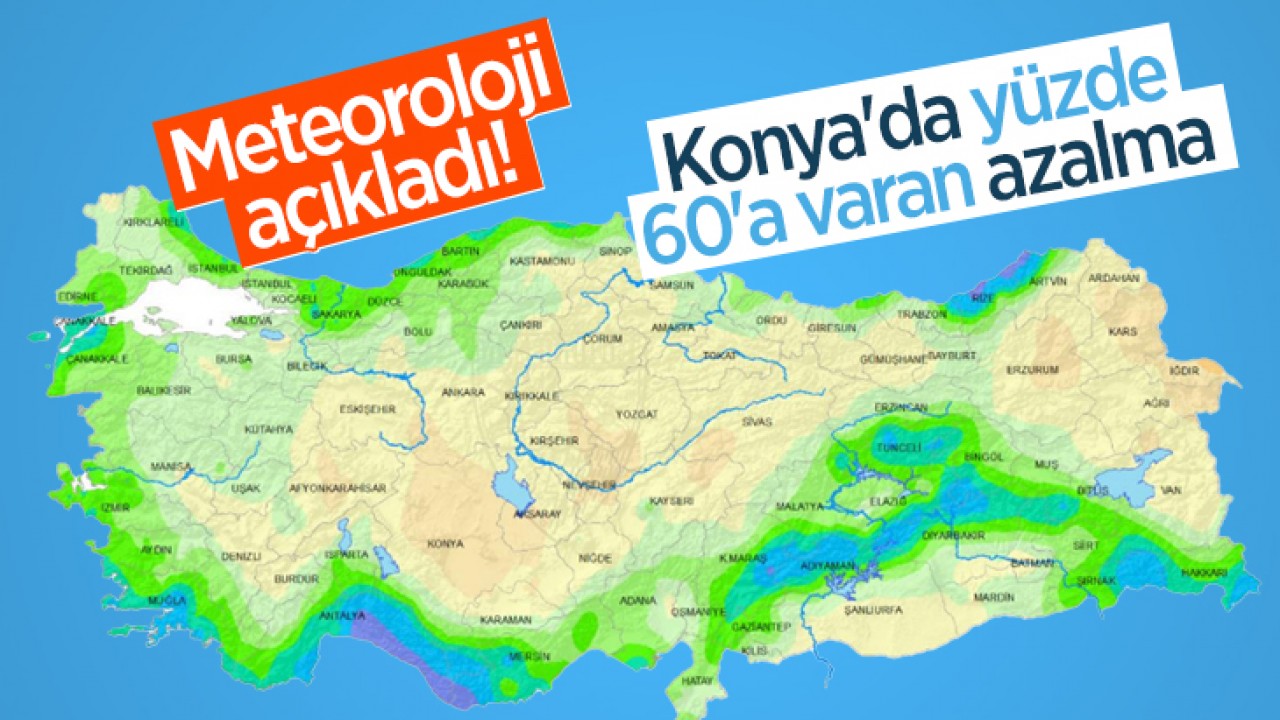 Konya'da ise yüzde 60'a varan azalma kaydedildi. İl geneli yağışlarda en fazla yağış metrekareye 155,5 kilogramla ile Rize, en az yağış 17,1 kilogramla ile Iğdır'da kaydedildi. Normaline göre en fazla azalma ise yüzde 45 ile Aksaray'da oldu. Bölge geneli yağışlarda ise Doğu Anadolu Bölgesi hariç, tüm bölgelerde azalma yaşandı. En fazla azalma yüzde 31 ile İç Anadolu Bölgesi'nde gerçekleşti.