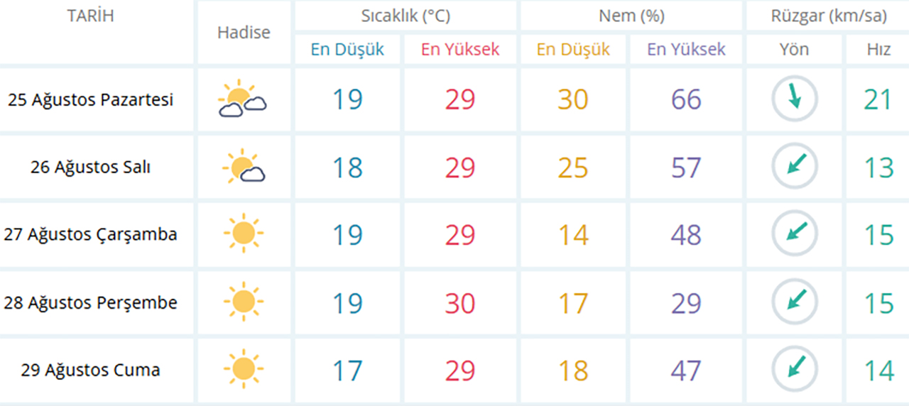 25 Ağustos Pazartesi- Parçalı bulutlu, 29
