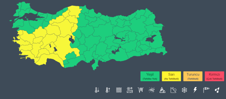 Bu kapsamda, söz konusu bölgelerde bulunan 19 il için "sarı" kodlu meteorolojik uyarı yayımlandı.