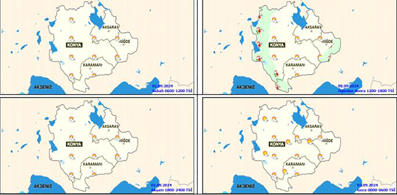 Meteoroloji 2 Eylül hava tahmin raporunu yayınladı. Buna göre Konya’da bugün sağanak ve gök gürültülü sağanak yağış bekleniyor.