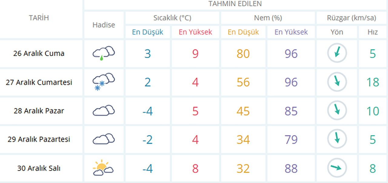 İŞTE KONYA'DA 5 GÜNLÜK TAHMİN