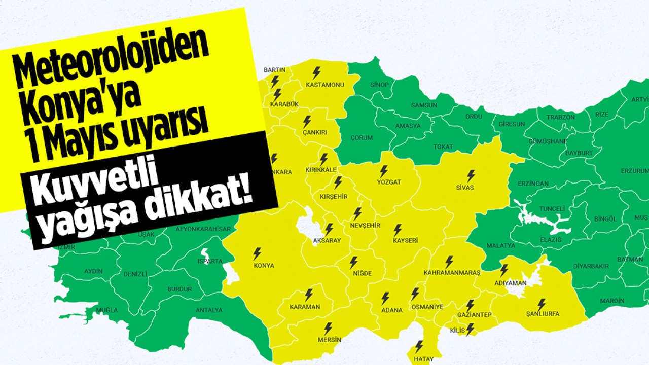 Meteorolojiden yapılan açıklamaya göre Konya ve çevresinde gök gürültülü, aralıklı ve yerel kuvvetli sağanak yağış bekleniyor.