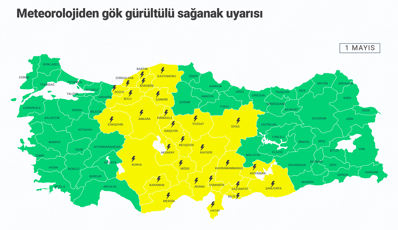gürültülü sağanak yağışların yerel olarak kuvvetli (21-50 kg/m²) olması bekleniyor. Bu nedenle oluşması muhtemel risklere karşı vatandaşların dikkatli ve tedbirli olması gerekmektedir.