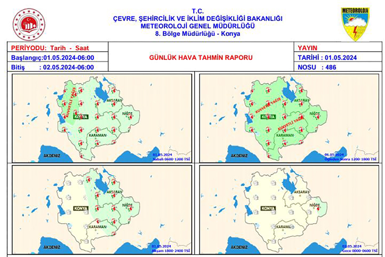 Yapılan son değerlendirmelere göre Konya, Karaman, Niğde ve Aksaray'da sağanak ve gök