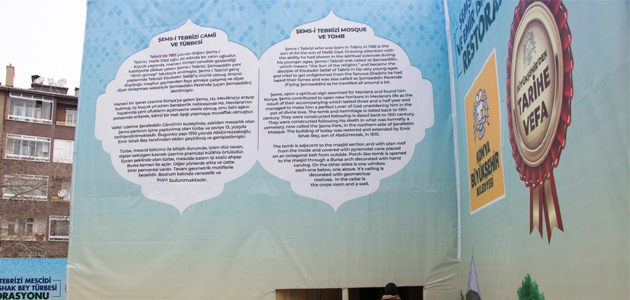 Konya Büyükşehir Belediyesi tarafından "Tarihe Vefa" projesi kapsamında türbede başlatılan restorasyon çalışmaları ise sürüyor.