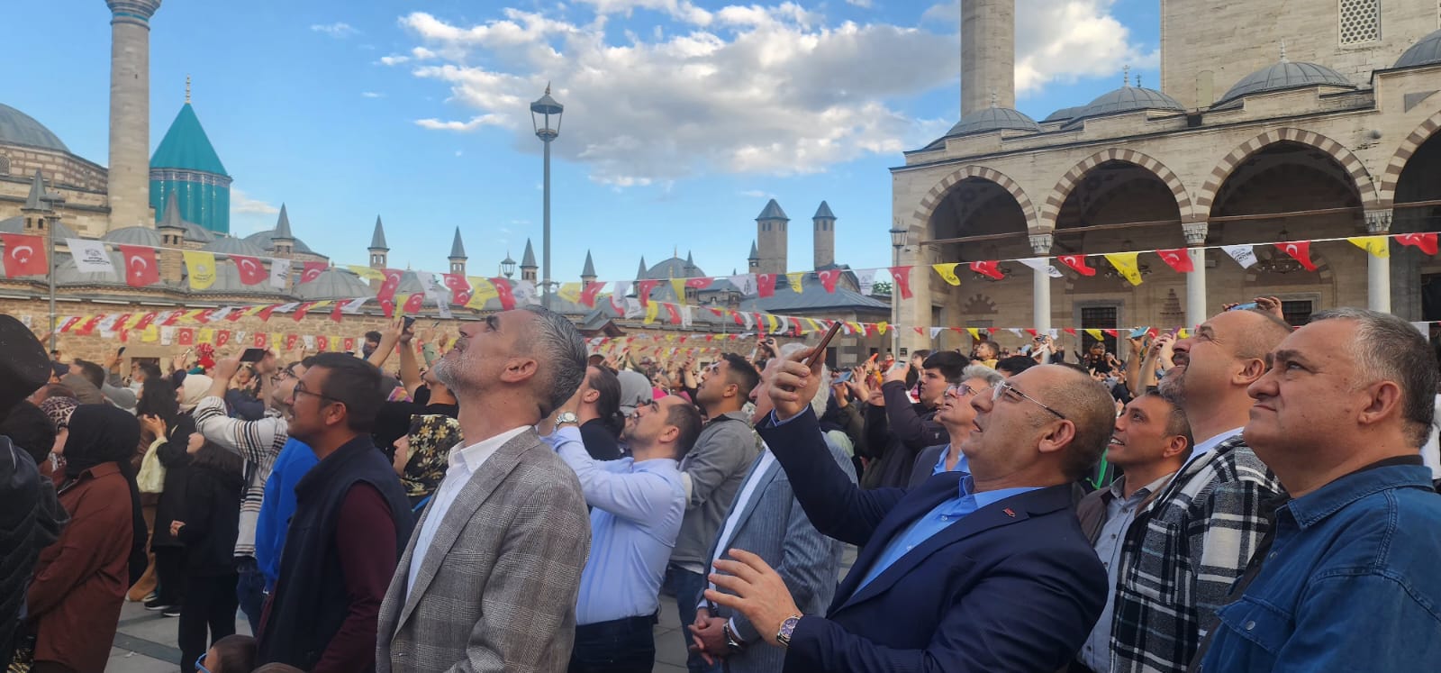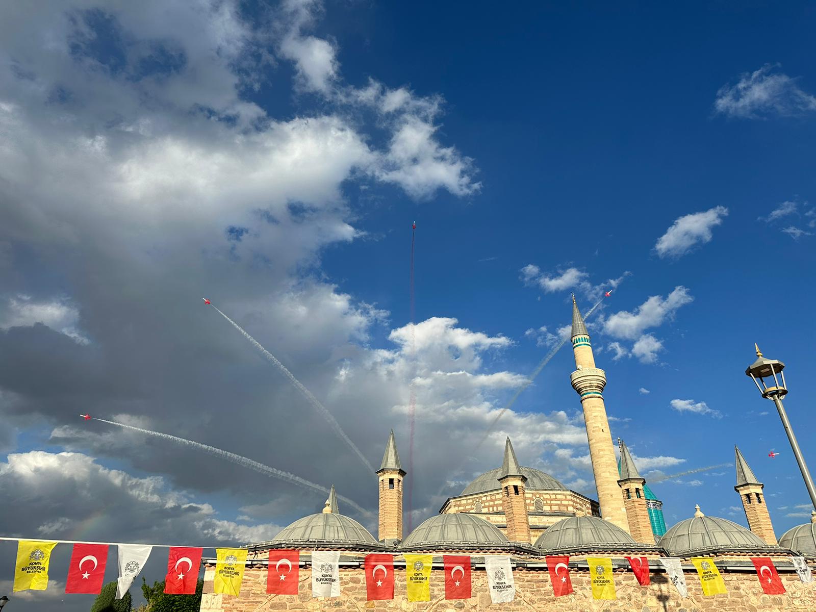 Konya semalarında düzenlenen uçak gösterilerinde pilotlar, Mevlana Müzesi ve tarihi Selimiye Camii üzerinden akrobatik uçuşlar yaptı.Jetlerin gösterisini izlemek için meydanı dolduran kalabalık, bu anları heyecan ve ilgiyle takip ederek cep telefonu kamerasıyla kayıt altına aldı.