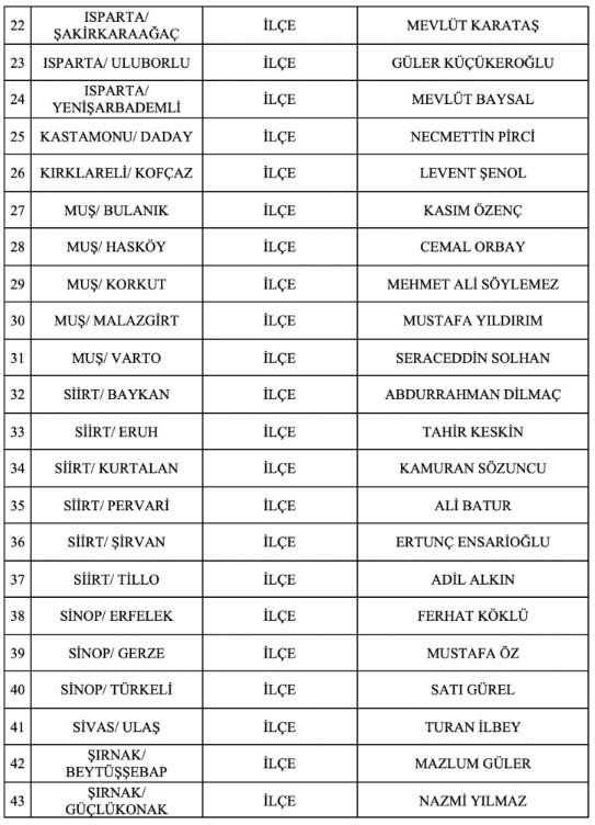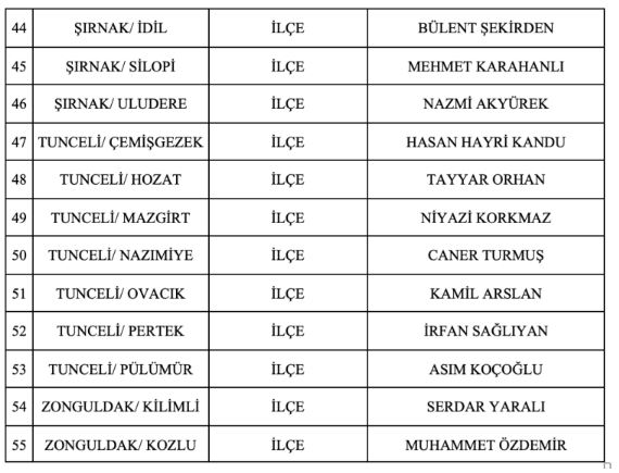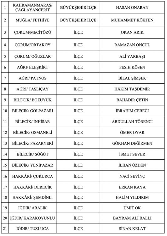 İsmi açıklanan belediye başkan adayları şöyle;