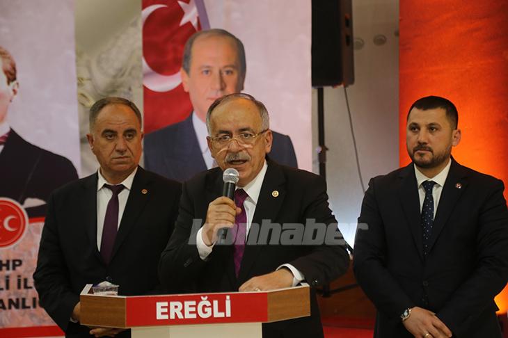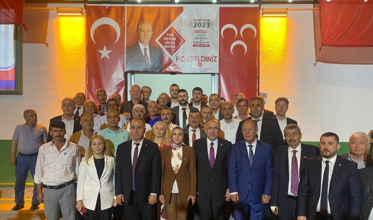 Toplantıya, MHP Konya Milletvekili Esin Kara, MYK Üyeleri Güzide Çipan ve Özer Karakayacı, MHP Konya İl Başkanı Remzi Karaaraslan, Belediye Başkanı Hüseyin Oprukçu, Emirgazi Belediye Başkanı Nurişen Koçak, Halkapınar Belediye Başkanı Mehmet Bakkal, AK Parti İlçe Başkanı Zübeyir Dursun, MHP Ereğli İlçe Başkanı Musa Yılmaz, belediye meclis üyeleri, çeşitli STK'ların temsilcileri, mahalle muhtarları ve partililer katıldı.