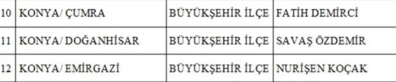 Çumra Belediye Başkan Adayı Fatih Demirci, Doğanhisar Belediye Başkan Adayı Savaş Özdemir, Emirgazi Belediye Başkan Adayı ise Nurişen Koçak oldu.