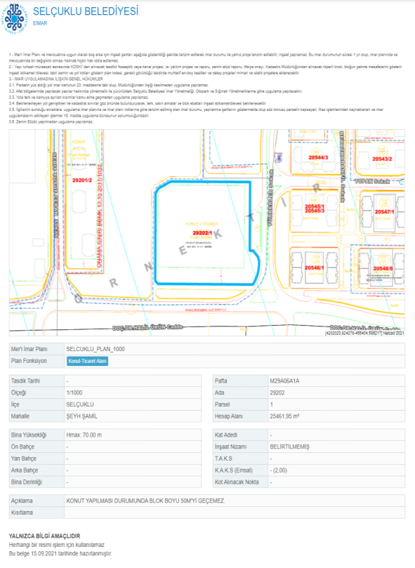 Bu çerçevede Selçuklu Belediye Meclisi’nin 05.02.2021 tarih ve 28 sayılı kararı ile uygun görülen ve içerisinde bu parselin de bulunduğu 100 den fazla parselde serbest ibaresi kaldırılarak, mevcut ruhsat yüksekliğine göre Büyükşehir Belediye Meclisi’nin 12.03.2021 tarih ve 218 sayılı kararı ile resen onaylanmıştır.
