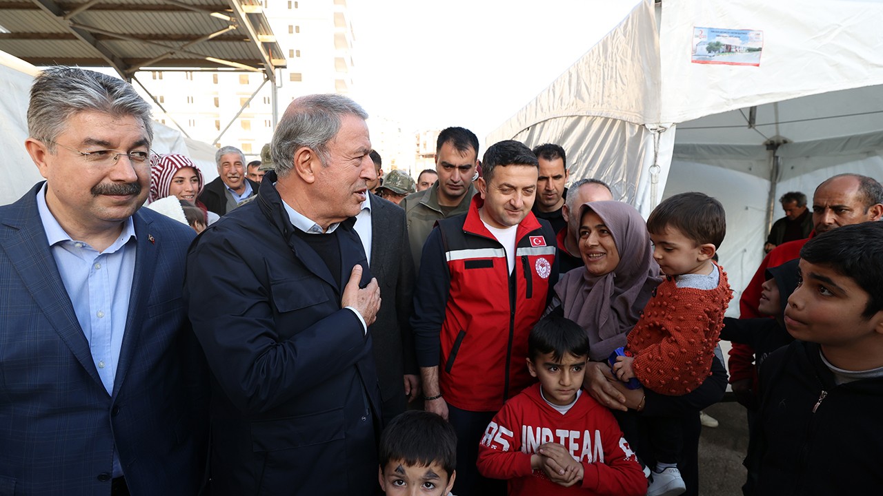 Bakan Akar, bu süreçte gösterilen dayanışmadan dolayı dost ve kardeş ülkelere de teşekkür etti.Akar ve beraberindekiler, çadır kente giderek depremzedelerle bir araya geldi. Vatandaşlarla konuşan, taleplerini dinleyen Akar, Aile ve Sosyal Hizmetler Bakanlığı tarafından kurulan Psikososyal Destek Çocuk Alanı'nı da ziyaret etti.