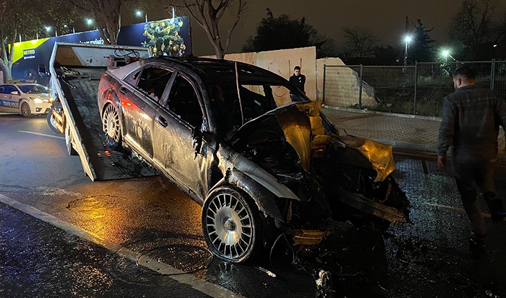 Otomobilden çıkan dumanlar kısa sürede yerini alevlere teslim etti. Alev alev yanan milyonluk otomobil kullanılmaz hale geldi. Sürücü Doğukan T. yaralandı.