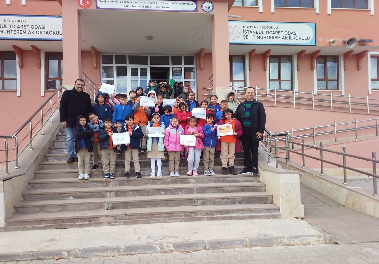 Şükriye Onsun İlkokulu 2. Sınıf öğrencileri eTwinning “İyilik Zinciri Macerası” projesi kapsamında anlamlı bir çalışmaya imza attı. Bu kapsamda Selçuklu İlçesi Sızma Mahallesinde bulunan İTO Şehit Muhterem Ak İlkokulu 2A sınıfı kardeş sınıf seçilerek ziyaret edildi.