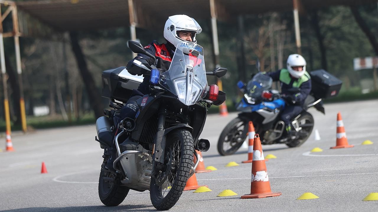Jandarma Genel Komutanlığı'nın sorumluluk alanlarında, emniyet, asayiş ve kamu düzeninin sağlanması için görev yapan motosikletli trafik ve asayiş timleri, Bursa'da güçlük seviyesi yüksek eğitimlerden geçiyor.