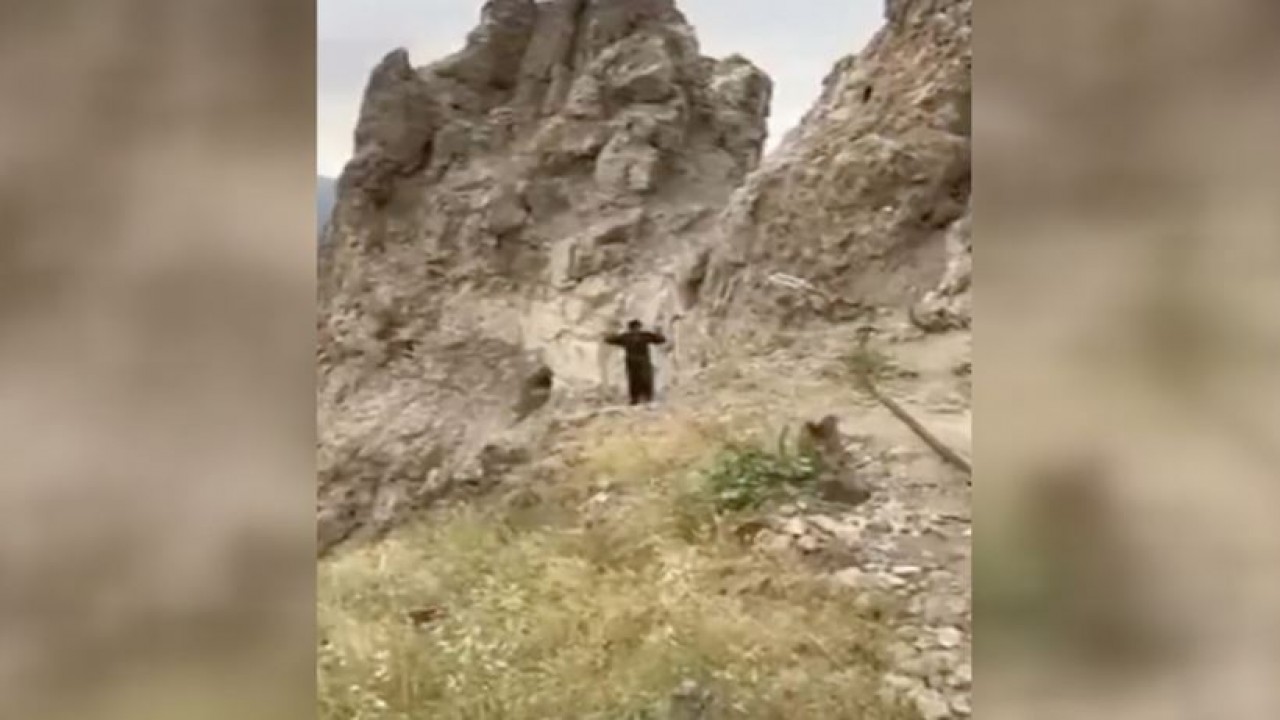 Milli Savunma Bakanlığı (MSB), Irak'ın kuzeyindeki Pençe-Kilit Operasyonu bölgesinde, iki teröristin saklandığı mağaradan çıkarak teslim olma anlarının görüntüsünü paylaştı.
