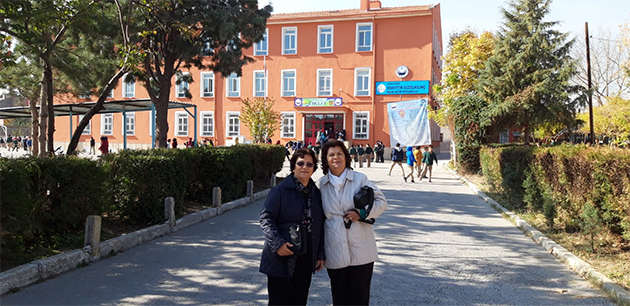 Perihan Nurullahoğulları ve Neriman Akyol da babalarının adına yaptırılan Muhittin Güzelkılınç Anadolu Lisesini ziyaret etti.