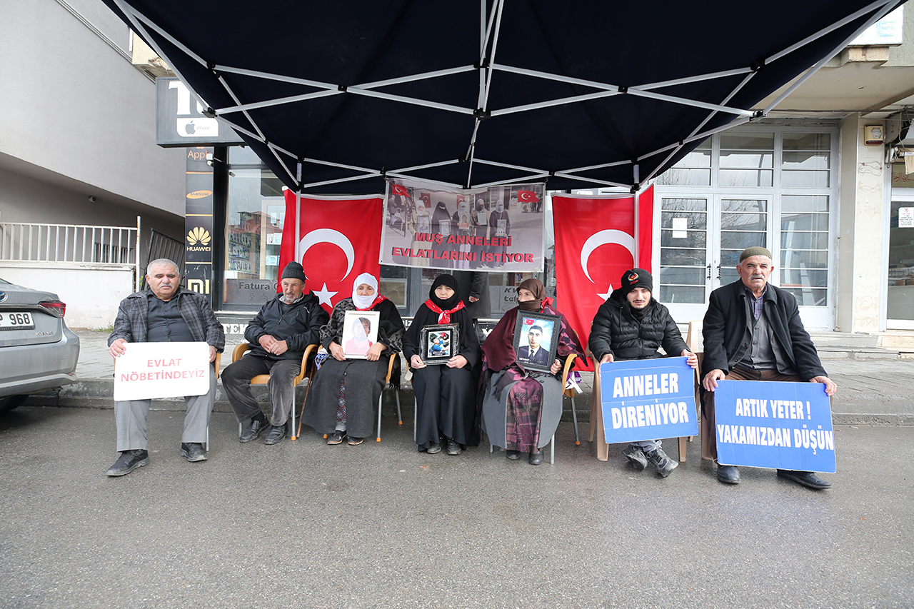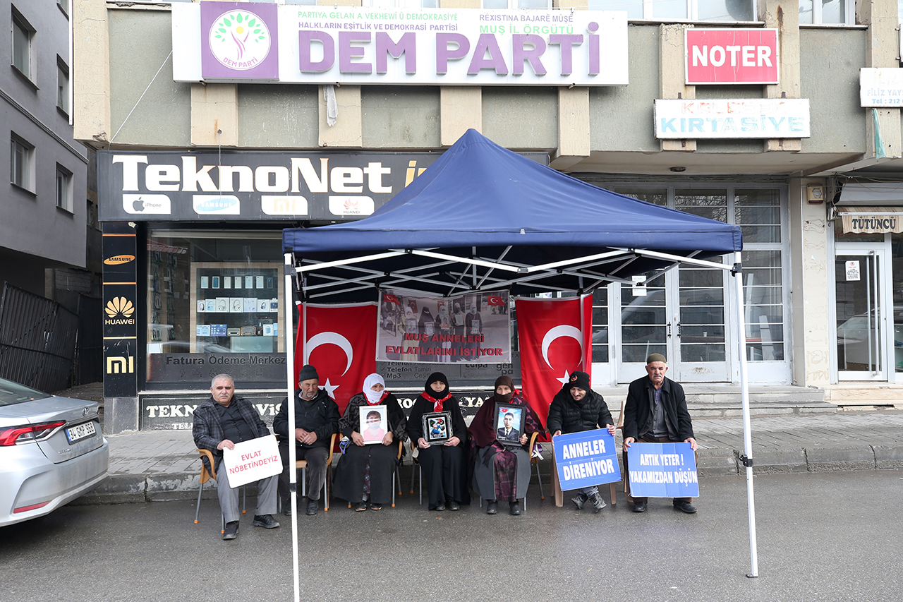 Muş'ta çocukları terör örgütü PKK tarafından kaçırılan aileler, DEM Parti İl Başkanlığı binası önündeki eylemlerine devam etti.