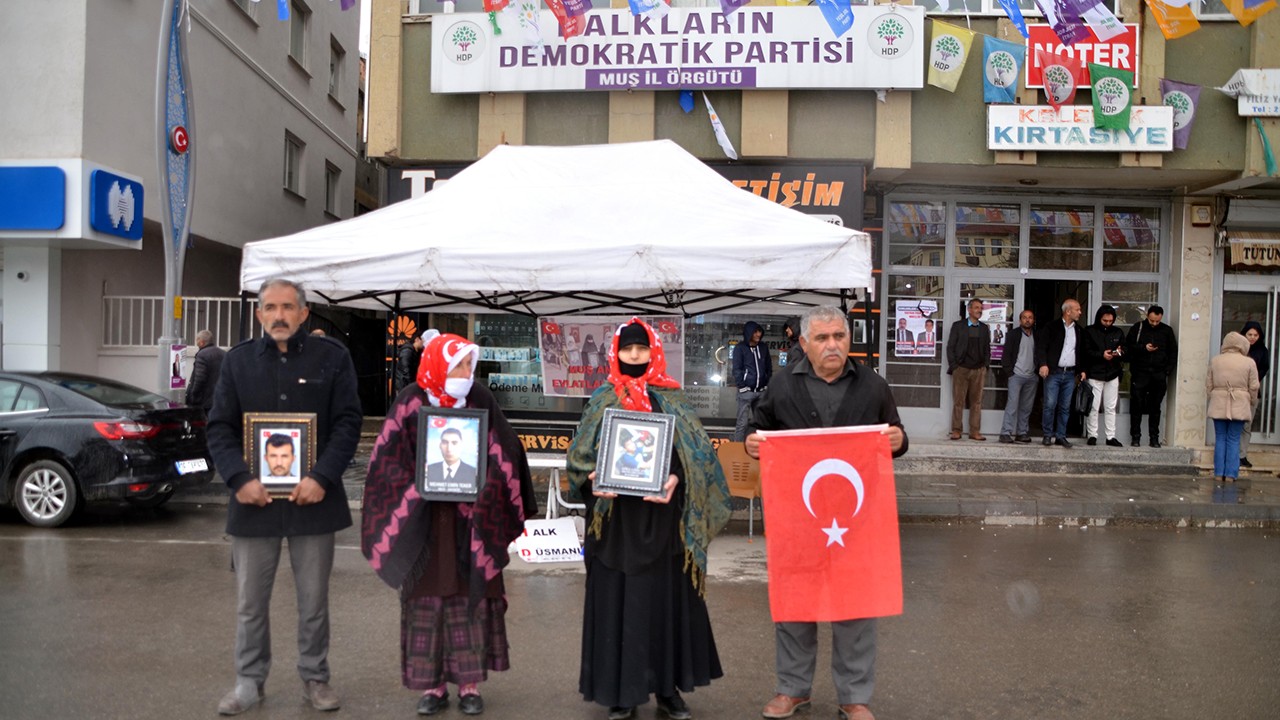 Muş'ta çocuklarının terör örgütü PKK tarafından dağa götürülmesinden HDP'yi sorumlu tutan aileler, partinin il başkanlığı önünde oturma eylemi yaptı.