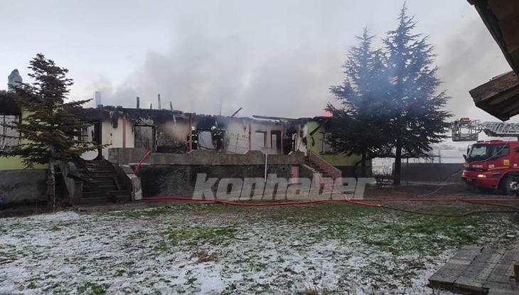 Konya'nın Kulu ilçesinde müstakil evde çıkan yangın itfaiye ekiplerince söndürülürken, ev kullanılamaz hale geldi.
