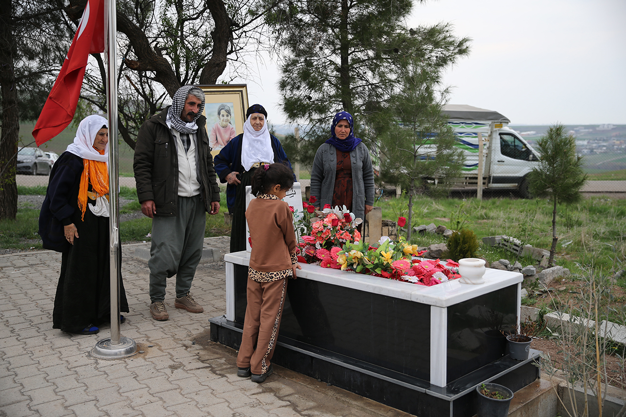 Diyarbakır'da vatandaşlar, kaybolduktan sonra cansız bedenine ulaşılan 8 yaşındaki Narin Güran'ın mezarını Ramazan Bayramı dolayısıyla ziyaret ediyor.