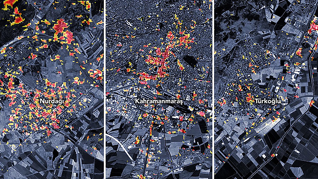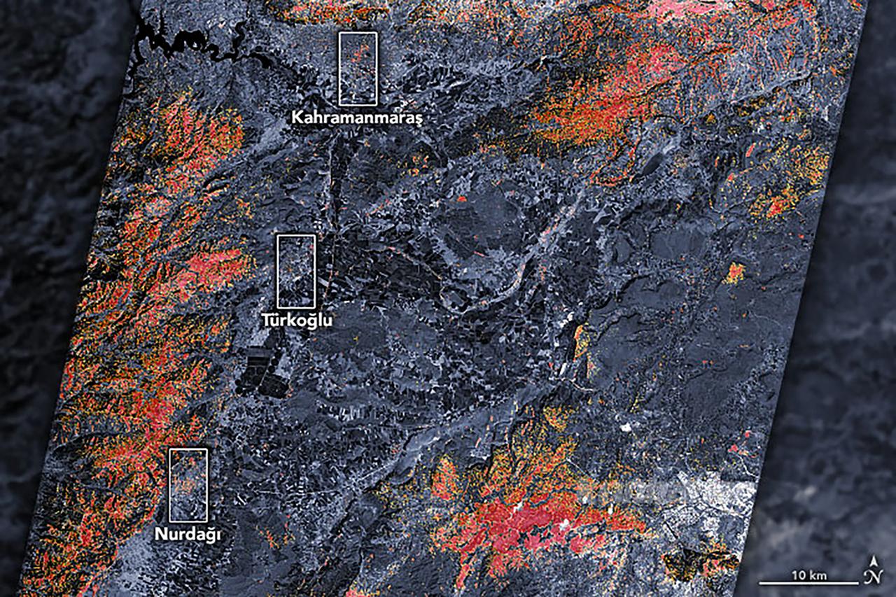 ABD Havacılık ve Uzay Ajansı (NASA), "Asrın felaketi" olarak nitelenen 7,7 ve 7,6 büyüklüğündeki depremlerden etkilenen Kahramanmaraş ile ilçesi Türkoğlu ve Gaziantep Nurdağı'ndaki hasarı noktasal olarak gösteren uydu haritası yayınladı.