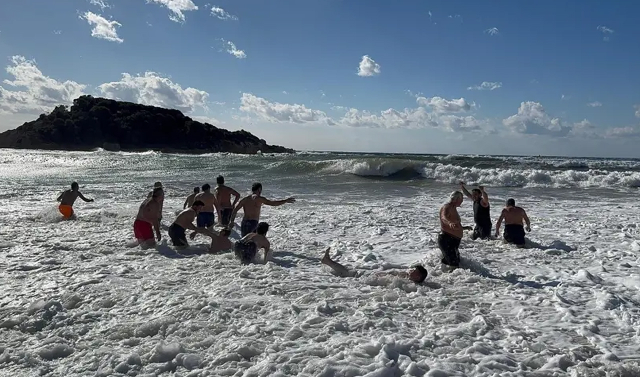 Yurdun büyük bölümünde soğuk ve yağışlı hava etkisini gösterirken, Mersin’in Bozyazı ilçesi yeni yıla adeta yazdan kalma bir günle girdi. Termometrelerin 12 dereceyi gösterdiği ilçede, her yıl 1 Ocak’ta geleneksel hale gelen denize girme etkinliği bu yıl da renkli gerçekleştirildi.