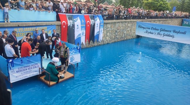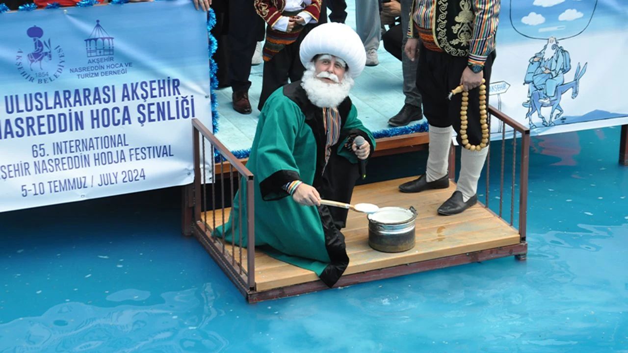 Temsili Nasreddin Hoca’yı canlandıran Mustafa Yılmaz, elindeki yoğurt kabıyla denize maya çaldı. Yılmaz, Nasreddin Hoca’nın meşhur fıkrasına atıfta bulunarak, “Ya tutarsa… Tutmazsa da tuzlu suda ayran olur” sözleriyle izleyenleri güldürdü.