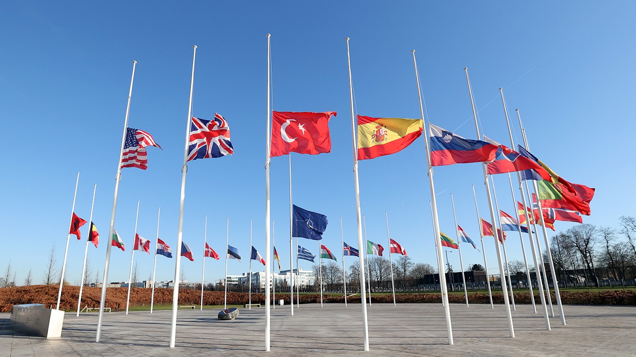 NATO karargahındaki bayraklar, Türkiye'deki Kahramanmaraş merkezli depremler nedeniyle dayanışma sergilemek için yarıya indirildi.