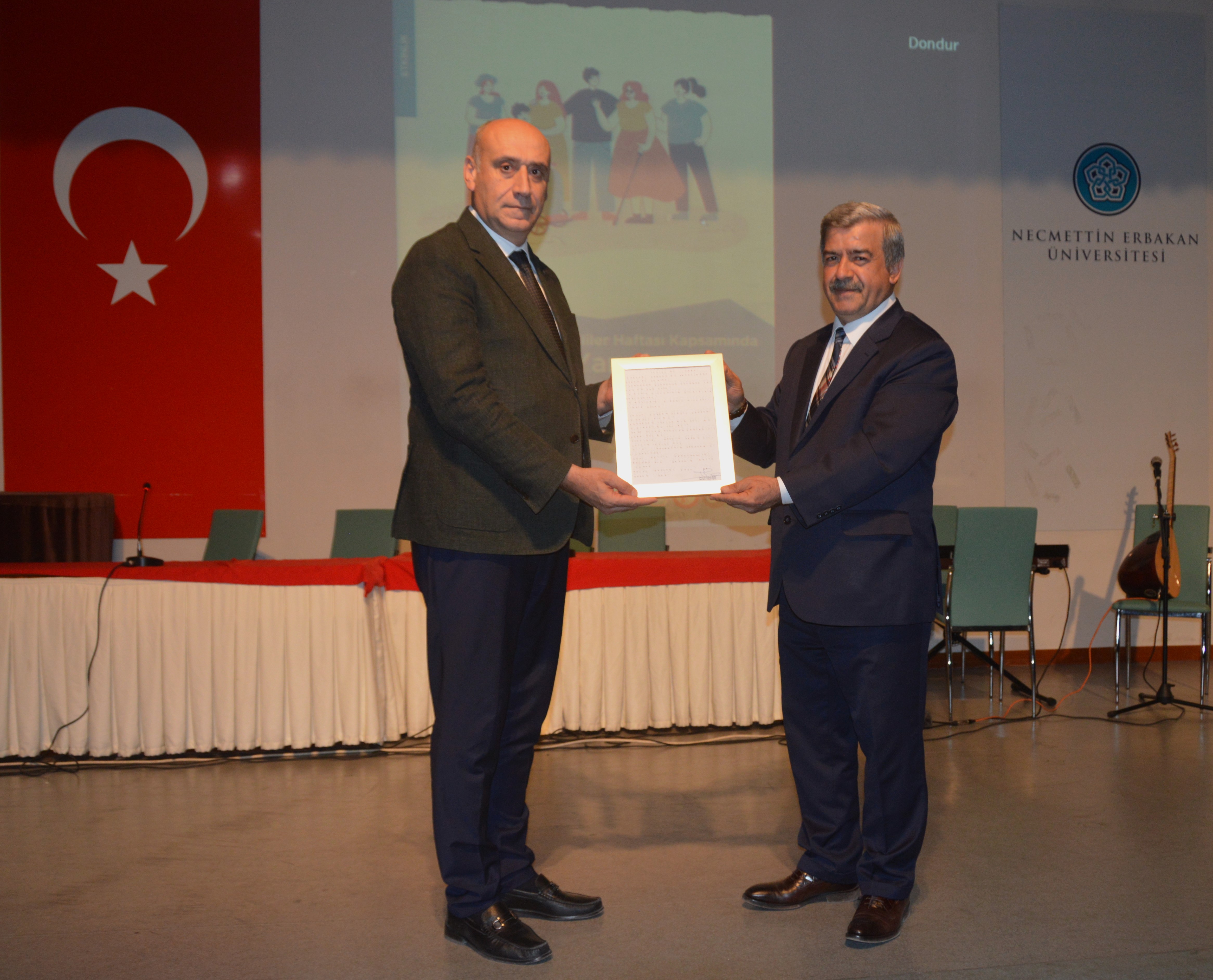 NEÜ Engelli Öğrenci Birim Koordinatörlüğü’nün gerçekleştirdiği 10-16 Mayıs Engelliler Haftası programında bulunmaktan son derece memnun olduklarını ifade eden Meram Halk Eğitimi Merkezi Müdürü Recai Şentürk de, “Bu anlamlı etkinlikler içerisinde olmak gerçekten bizlere büyük kıvanç ve onur veriyor. Her bireyin kurumumuzda istifade edebileceği alanlar var. Toplumumuz maalesef Halk Eğitim Merkezi Müdürlükleri’nin imkanları hakkında yeterince bilgi sahibi değil. Necmettin Erbakan Üniversitesi bu konuda bizlere ciddi manada katkılar sunuyor. Birlikte çok ciddi çalışmalar gerçekleştirme imkanı buluyoruz. Siz gençlere hizmet etme imkanını bizlere sağladığı için Necmettin Erbakan Üniversitesi’ne teşekkür ediyoruz” şeklinde konuştu.
