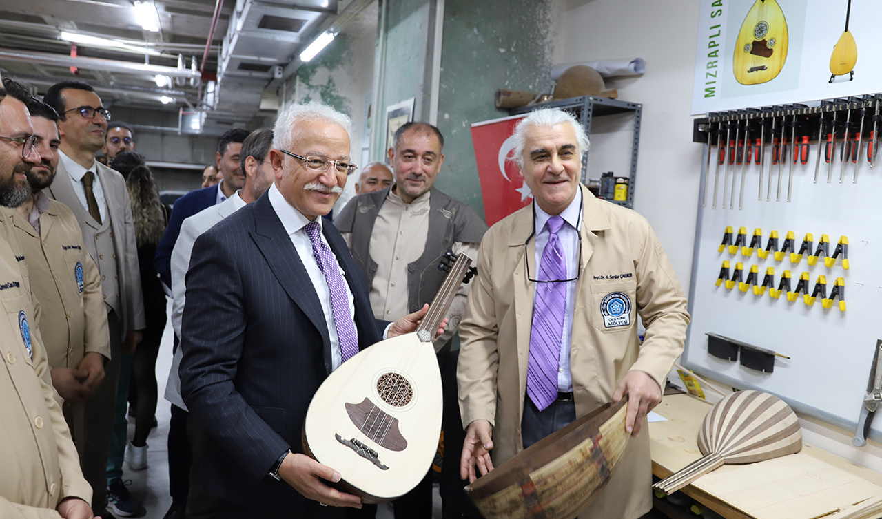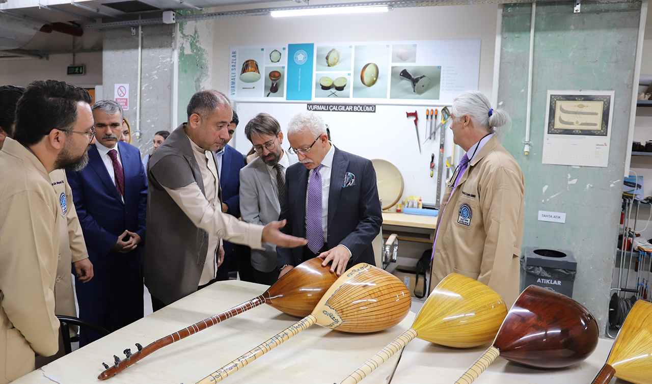 Necmettin Erbakan Üniversitesi Türk Müziği Devlet Konservatuvarı Çalgı Yapım, Bakım, Onarım Atölyesinin, üniversiteler arasında alanında Türkiye’nin en büyük ve donanımlı çalgı yapım, bakım, onarım atölyesi olduğunu ifade eden Necmettin Erbakan Üniversitesi Türk Müziği Devlet Konservatuvarı Müdürü Prof. Dr. Mehmet Gönül, “Fabrikasyon üretimi yapan özel sektör işletmeleri saymazsak bizim atölyemiz kadar donanımlı ve büyük başka bir atölye yok diyebiliriz. Ata topraklardan intikâl eden sazlar da dahil edildiğinde Türk Müziği enstrümanlarının hepsinin atölyemizde üretiliyor ve üretilecek olması bakımından Türkiye'de eşsiz konumdayız. Atölyemizde, aslında menşei yine ata topraklar olan, dünya sathında zaman içerisinde farklı formlarda şekillenmiş ve gelişmiş keman, çello gibi Türk müziği icra edilebilmesi bakımından perdesiz sisteme sahip diğer müzik kültürlerinin sazlarını da üretebiliyoruz. Atölyemizin kuruluş gayelerinden birisi de çalgı yapım alanında yeni teknikler geliştirmek, patentler üretmektir. Necmettin Erbakan Üniversitesi Türk Müziği Devlet Konservatuvarı olarak biz ne yapabiliyorsak Rektörümüz Prof. Dr. Cem Zorlu’nun bize açtığı ufuk, sağladığı imkânlar ve maddi-manevi verdiği desteklerle yapıyoruz. Bu destek konservatuvarımız çalışmalarını takip eden, etkinliklerimize konuk olan diğer üniversitelerden akademisyenlerce de takdir edilmektedir. Rektörümüz Prof. Dr. Cem Zorlu’nun Türk müziği alanına sağladığı katkı ve desteği başka bir yerde görmedik. Bu konuda çok değerli Rektörümüz başta olmak üzere emeği geçen tüm Rektör Yardımcılarımıza, Genel Sekreterimize, BAP Koordinatörlüğümüze, daire başkanlıklarımıza, hocalarımıza ve üniversitemizin emektar personeline teşekkür ediyoruz” dedi. (Yunus Köroğlu)