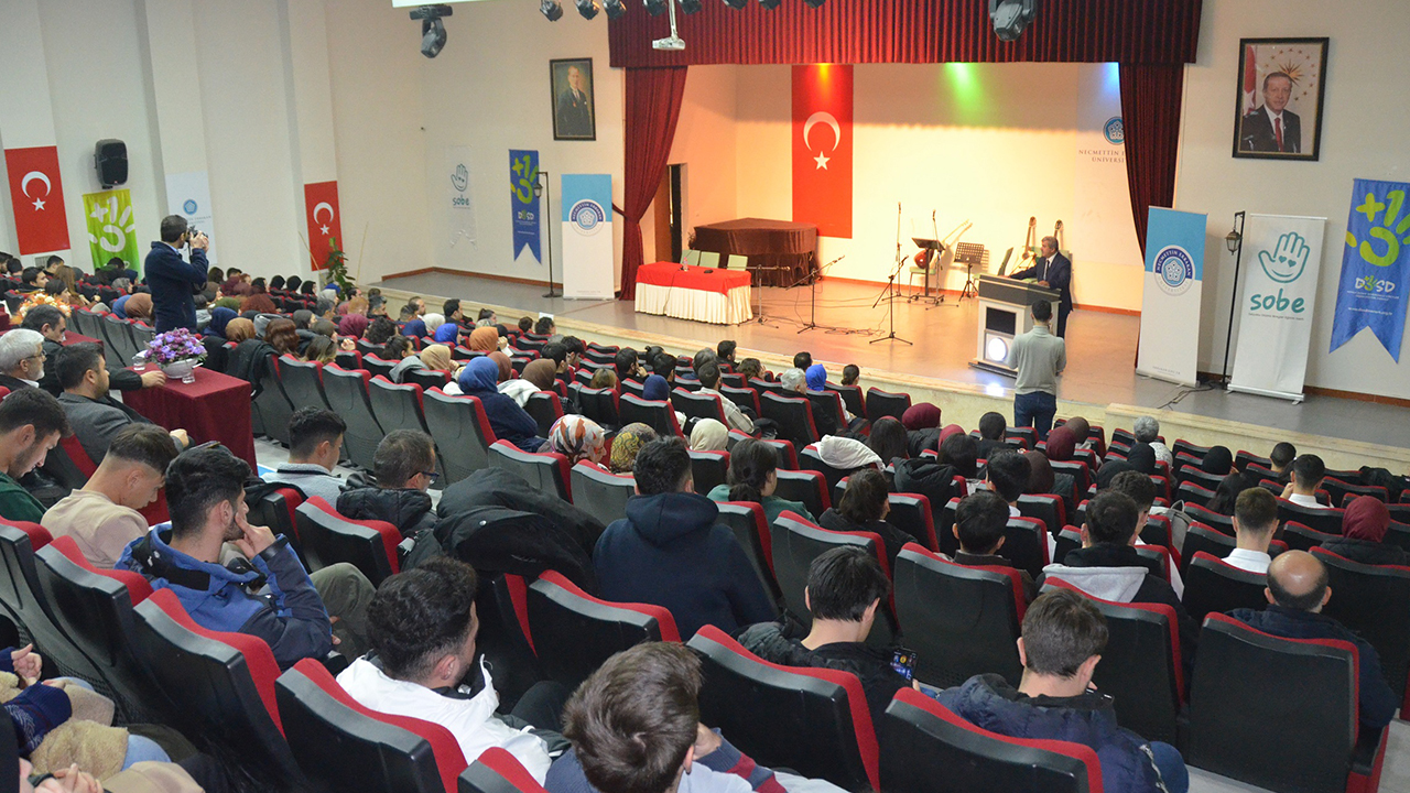 NEÜ Ahmet Keleşoğlu Eğitim Fakültesi Erol Güngör Konferans Salonu’nda gerçekleştirilen programda kürsüye ilk olarak NEÜ Özel Eğitim Bölüm Başkanı ve Engelli Öğrenci Birim Koordinatörü Prof. Dr. Hakan Sarı geldi.