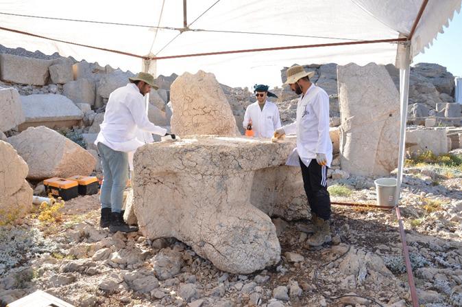 Bakanlıktan yapılan açıklamaya göre; 7-27 Temmuz 2025 tarihleri arasında 3 haftalık yoğun bir çalışmayla doğu ve batı teraslarındaki en kritik eserler üzerinde uygulamalar yapıldı. Adıyaman Müze Müdürlüğü'nden bir uzman ile altı restoratörün katıldığı çalışmalarda, Antiochos ve Kartal başları ile batı terasındaki iki kumtaşı rölyef üzerinde kapsamlı müdahaleler gerçekleştirildi.