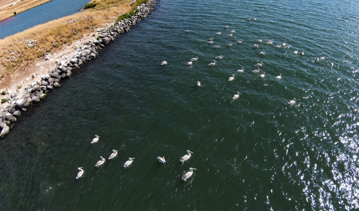 Bilimsel adı Pelecanus crispus olan ve soyu her geçen gün azalan tepeli pelikanlara bölgede yaşayan başka türler de eşlik ediyor.