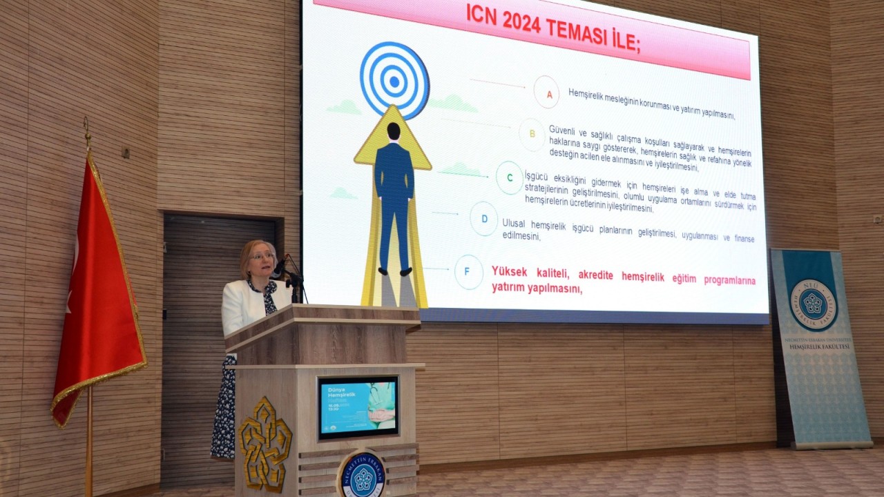 NEÜ Tıp Fakültesi Asım Duman Konferans Salonu’nda gerçekleştirilen etkinlik Hemşirelik Fakültesi Dekanı Prof. Dr. Emel Ege’nin konuşmasıyla başladı.