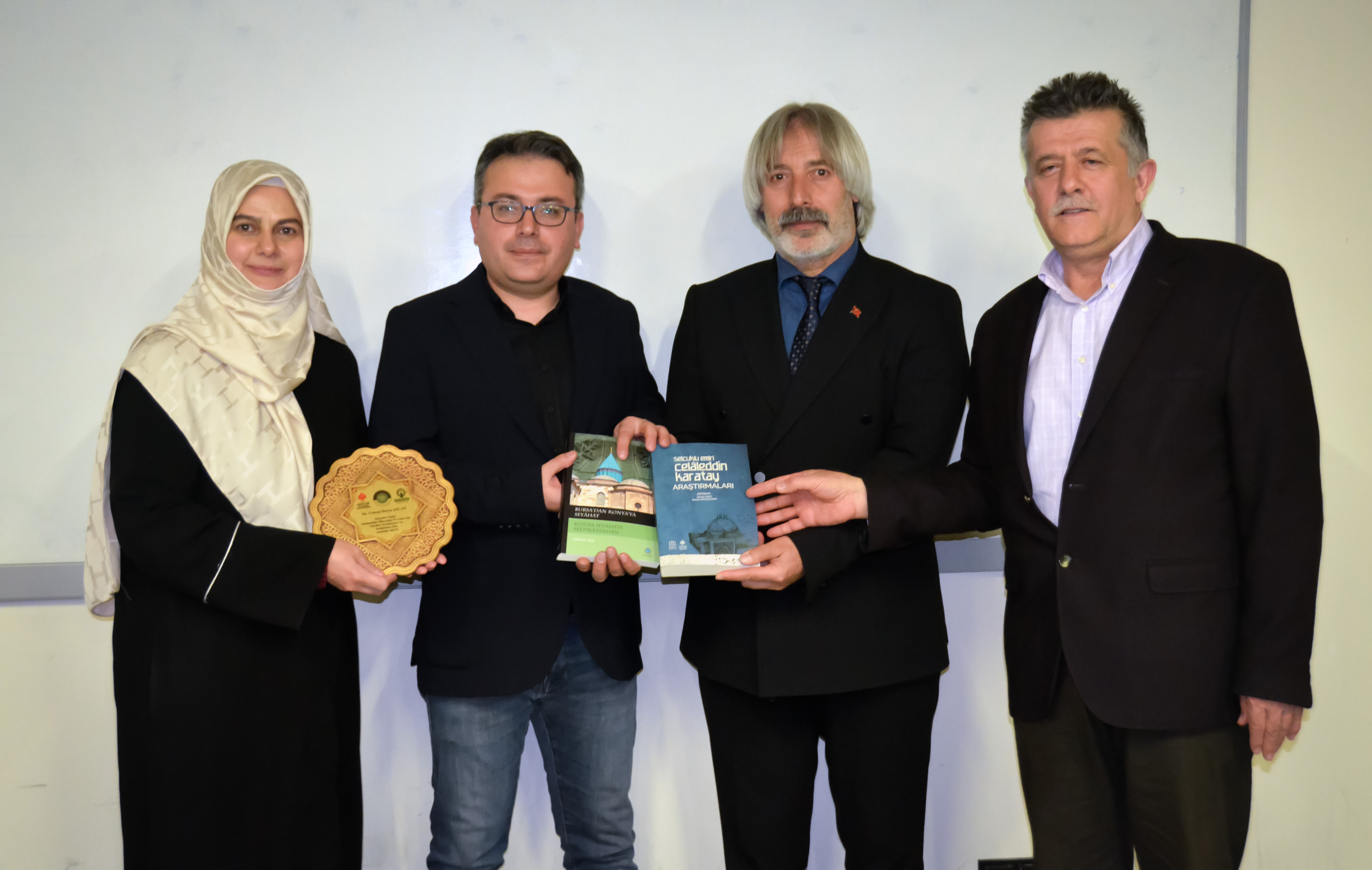 Konuşmanın ardından, Konya Vakıflar Bölge Müdürü Yılmaz Kılınç ile NEÜ Selçuklu Kültür ve Medeniyeti Uygulama ve Araştırma Merkezi Müdürü Prof. Dr. Ahmet Çaycı’nın Uzman Derya Aslan’a plaket ve hediye takdiminde bulunmasıyla konferans sona erdi. (Veli Şengül)