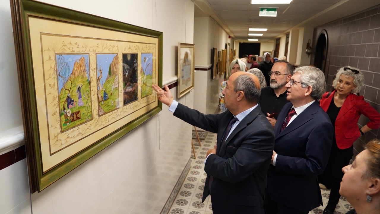 Sanatseverlerin büyük teveccüh gösterdiği; hat, tezhip, minyatür ve kalemişi sanatına ait eserlerden oluşan sergi, 6 Ekim 2023 tarihine kadar ziyarete açık olacak. (Tahir Yılmaz)