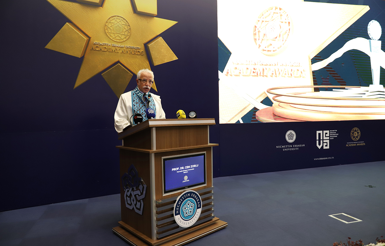 Ödül alan akademisyenleri tebrik eden Rektör Zorlu, “NEÜ sizin başarılarınızla gurur duyuyor. Bu ödüllerin sizi daha çok cesaretlendireceğine inanıyorum. Başarı yıldızının önderi olacağınıza, gençlerimize bu konuda kılavuzluk etmek için daha istekli olacağınıza canı gönülden inanıyorum. Ödül törenimize yalnızca bir kutlama gözüyle bakmayalım. Devamlılığını sağlayabildiğimiz, her yıl bir öncekinden daha fazla akademisyenimizin başarısına ortak olduğumuz, gençlerimizi bilim konusunda teşvik edebildiğimiz bir platform olmasını sağlayalım. Necmettin Erbakan University Academy Awards ödül törenlerinin gelenekselliğini koruyarak devam etmesi hepimizin görevidir. Başarı yıldızlarımız hep parlak olsun. Birlikte nice başarı öyküleri yazacağımıza inanıyor, Üniversitemizin başarılarına katkıda bulunan her birinize teşekkür ediyor, gelecekteki başarılarınızın devamını diliyorum” ifadelerini kullandı.