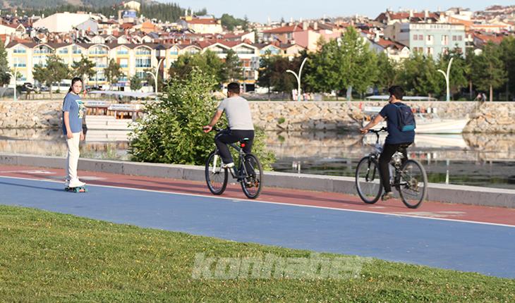 Beyşehir'in göle kıyısı bulunan Vuslat Parkı ile İçerişehir Mahallesi'ndeki kıyı bandında bulunan bisiklet ve yaya yürüyüş yolları, vatandaşların uğrak yerlerinden biri oldu.