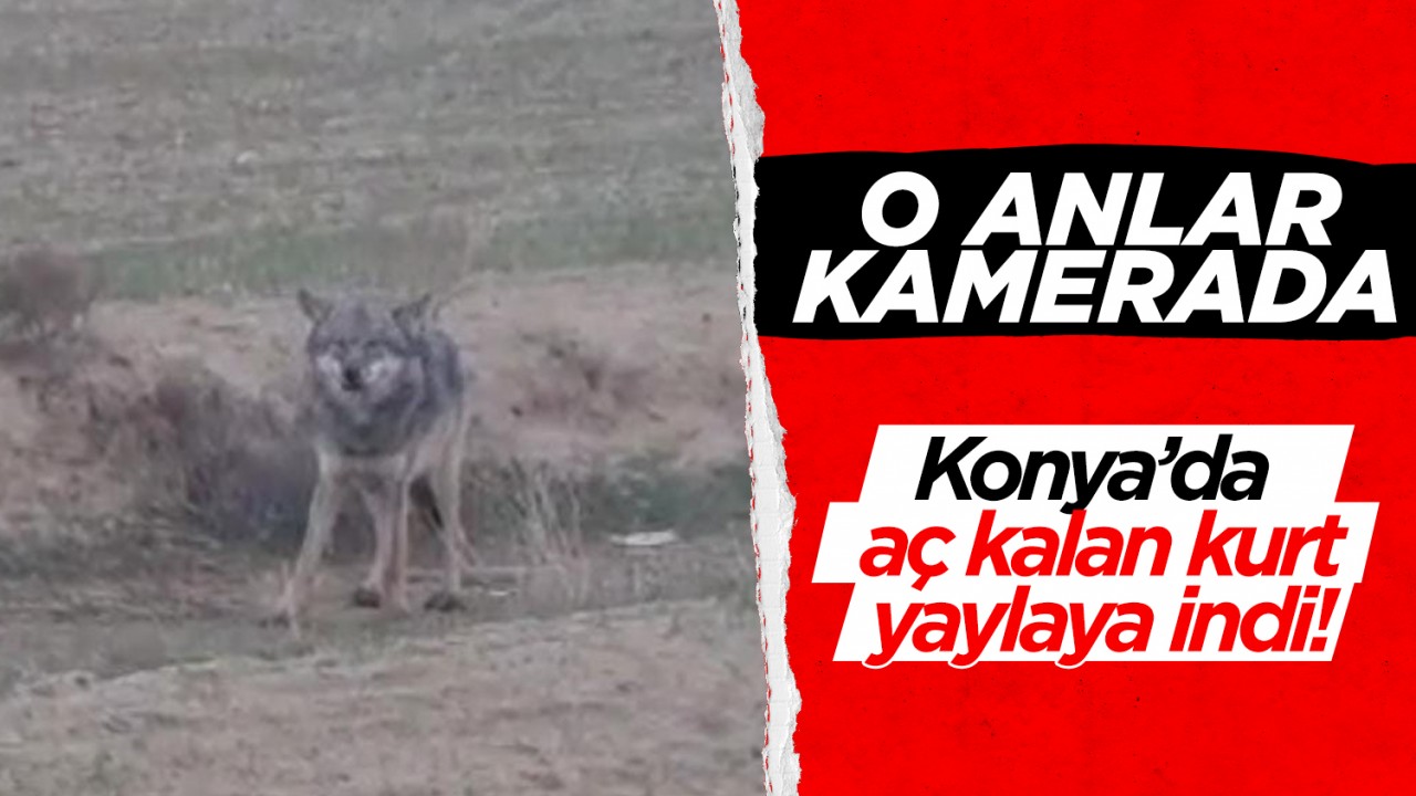 Konya'nın Kulu ilçesinde aç kalan kurt yerleşim yeri yakınlarına kadar indi. O anlar vatandaşın cep telefonu kamerasına böyle yansıdı.