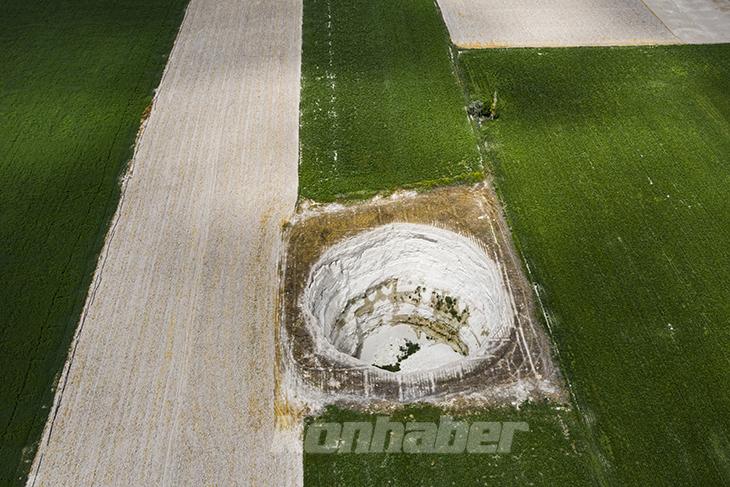 Binden fazla irili ufaklı obruğun bulunduğu Konya Ovası'ndaki dairesel oluşumlar, drone ile görüntülendi. İlçenin kuzeybatısında yer alan Çıralı Obruğu, yaklaşık 250 metre çapı ve 125 metre derinliği ile ön plana çıkıyor.
