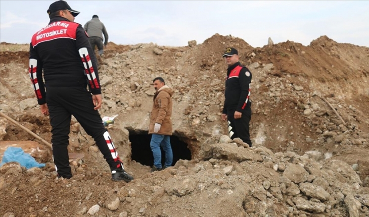 Adıyaman'ın Kahta ilçesinde yol yapım çalışması sırasında oda mezarda Roma dönemine ait 1600 yıllık olduğu değerlendirilen 5 insan iskeleti bulundu.