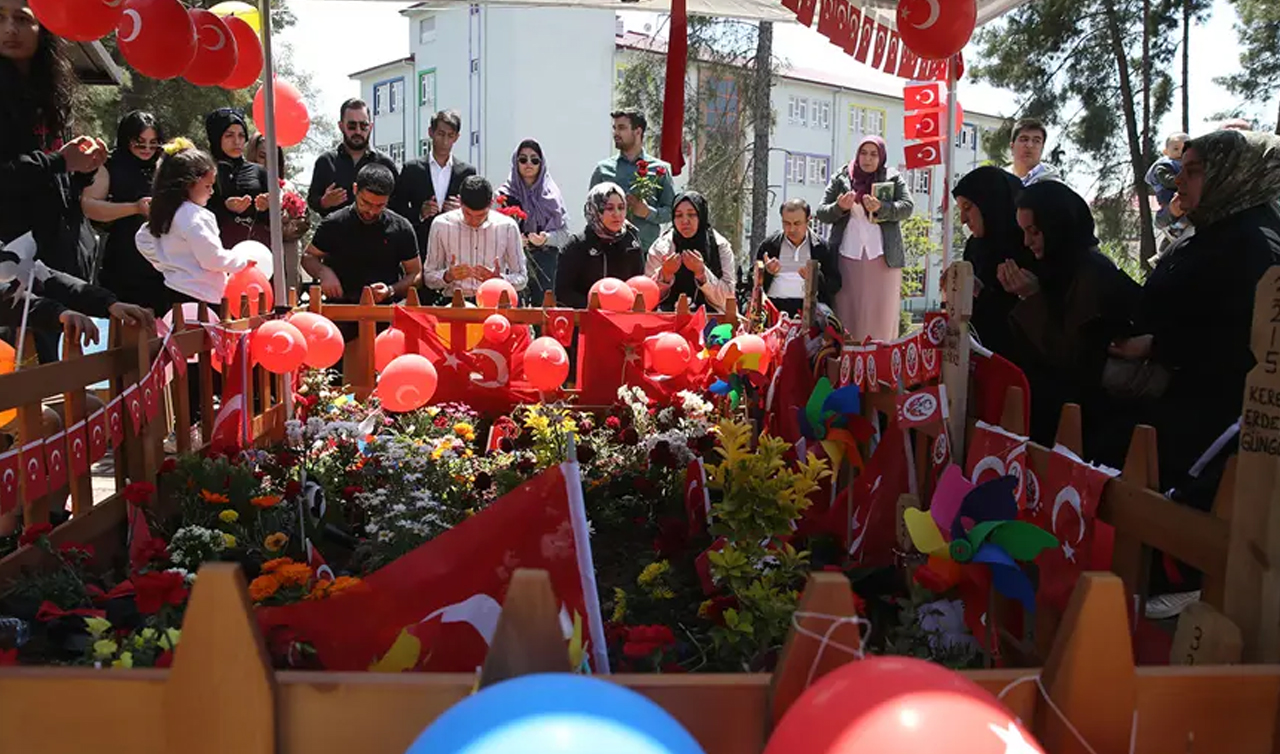 Şeyh Adil Mezarlığı'nda gerçekleştirilen ziyarette, Kerem Erdem Güngör, Zeynep Kılıç, Bayram Nabi Şişik ve Belinay Nur Boyraz'ın kabirlerine Türk bayrakları, çiçek ve rüzgar gülleri bırakıldı, renkli balonlar asıldı ve dua edildi.