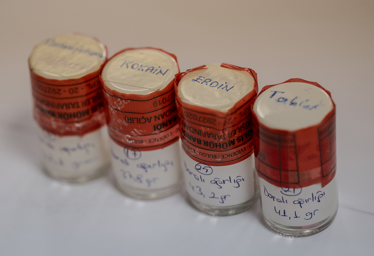 Laboratuvarda sahte alkol ve uyuşturucu maddeler üzerinde de incelemeler yapıldığını aktaran Kalkan, "Uyuşturucu analizlerinde, olay yerinden elde edilen ve uyuşturucu madde şüphesi bulunan bulgular üzerinde öncelikle nitelik tayini yapılır, hangi tür uyuşturucu madde olduğu belirlenir. Daha sonra saflık oranı ölçülür. Elde edilen veriler doğrultusunda soruşturma birimlerine gönderilmek üzere bir uzmanlık raporu hazırlanır." bilgilerini verdi.