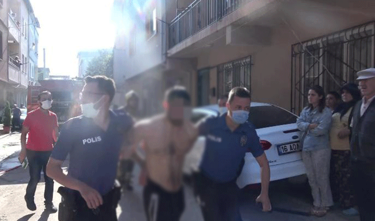 Bursa’da evini ateşe veren uyuşturucu bağımlısı şahıs, polis, itfaiye ve mahalle sakinlerine zor anlar yaşattı. Yangını söndürmeye gelen itfaiye ekiplerine ekmek bıçağı ve satır ile bir saat direnen bağımlı genç, polislerin koçbaşı ve levye ile kapıyı kırıp içeri girmesiyle etkisiz hale getirildi. Gözaltına alınan şahıs ambulanstaki ilk tedavisinin ardından polis merkezine götürüldü.