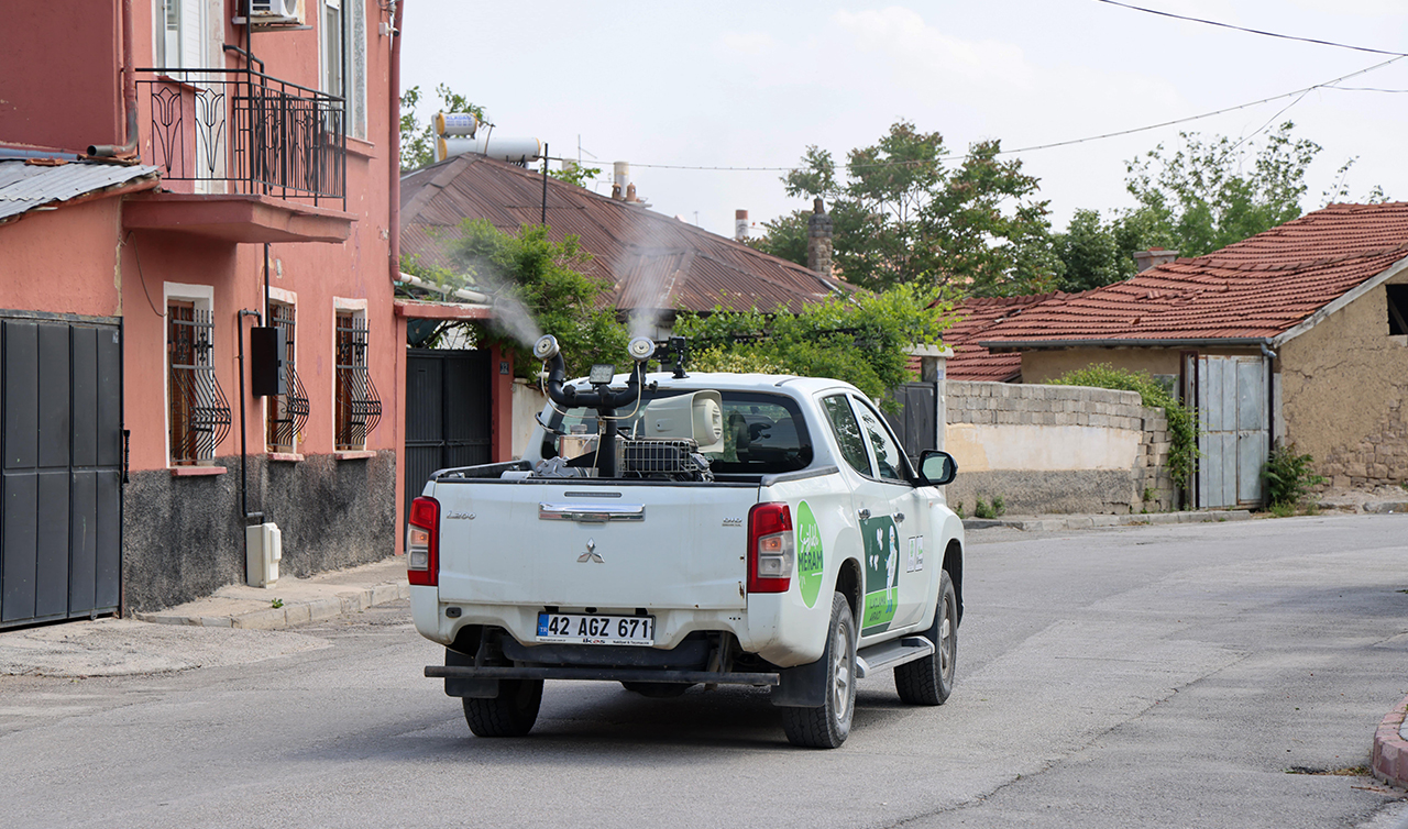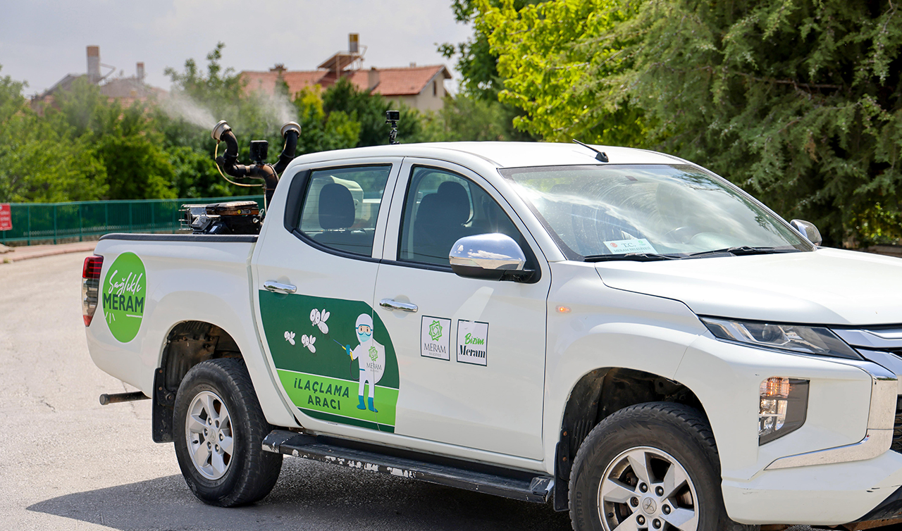 Meram Belediyesi, ilçede özellikle yaz aylarında hissedilen karasinek ve sivrisinek sorununa karşı titiz bir çalışma yürütüyor. Kışın bitmesi ve baharın kendini hissettirmesiyle birlikte hız kazanan ilaçlama çalışmaları, Meram Belediyesi Veteriner İşleri Müdürlüğü ile Park ve Bahçeler Müdürlüğü’nün koordineli çalışmasıyla aralıksız devam ediyor. Veteriner İşleri Müdürlüğü ekipleri, karasinek ve sivrisineklerin yoğun olarak ürediği su birikintileri, dere yatakları, çöp konteynerleri, kanalizasyon bölgeleri, hayvancılık alanları ve pazar yerlerinde ilaçlama faaliyetlerini artırırken; Park ve Bahçeler Müdürlüğü ekipleri de parklarda, cadde ve sokaklarda ağaçlık bölgelerde düzenli olarak ilaçlama çalışmaları gerçekleştiriyor.