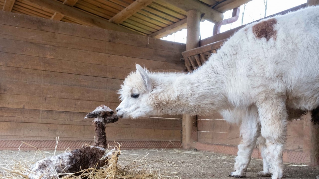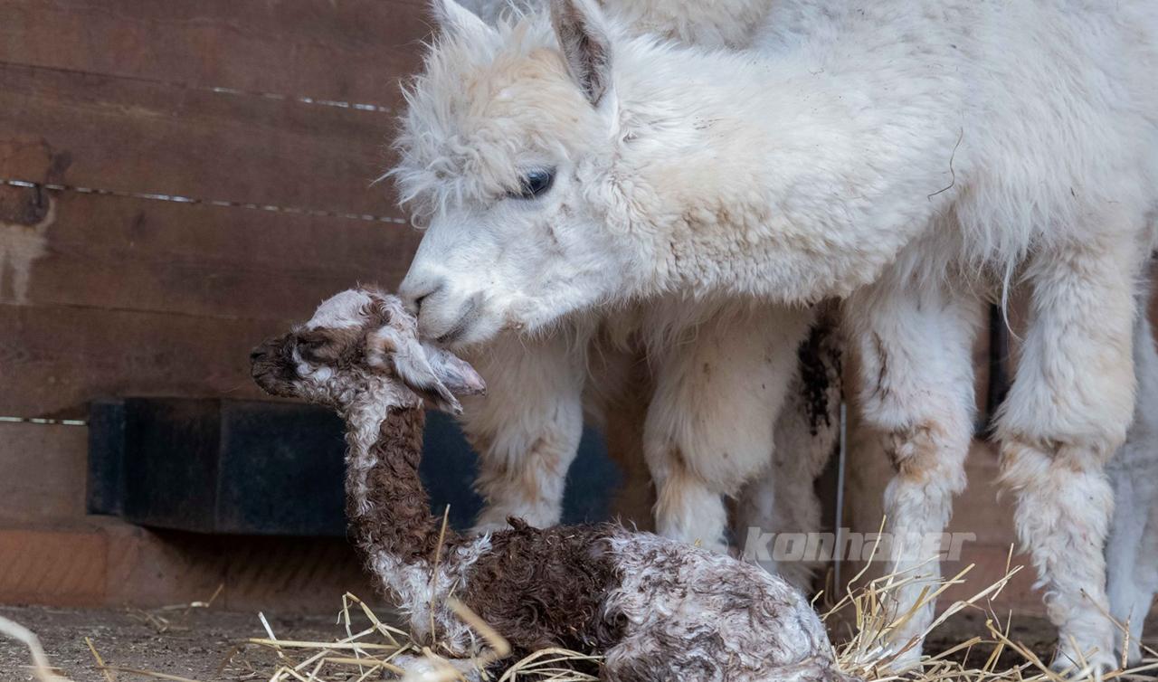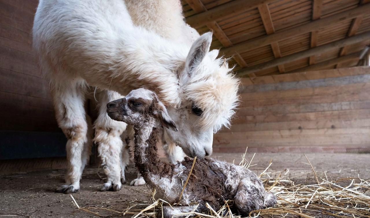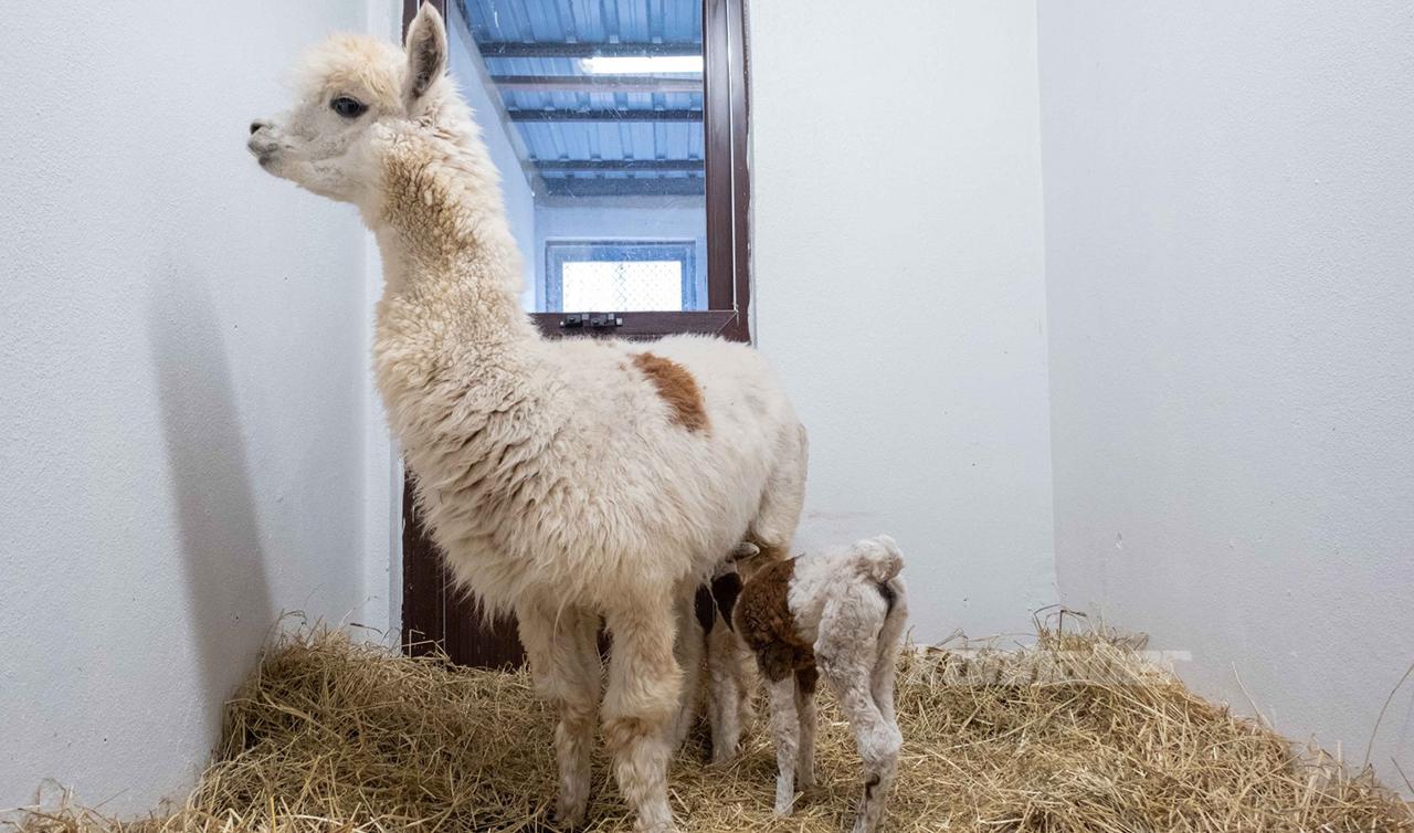 Veteriner hekim kontrolünde gerçekleşen doğumun ardından dünyaya gelen alpaka ile annesinin sağlık kontrolleri yapıldı.