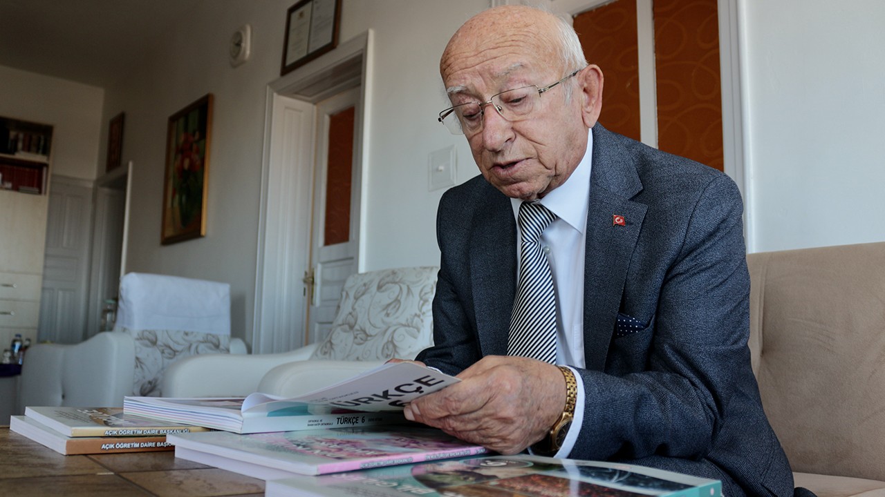 Konya'da 84 yaşında olmasına rağmen azimle çalışarak ortaokulu tamamlayan, 4 çocuk, 25 torun sahibi Dede Öztürk, okumanın yaşının olmadığını gençlere gösteriyor.