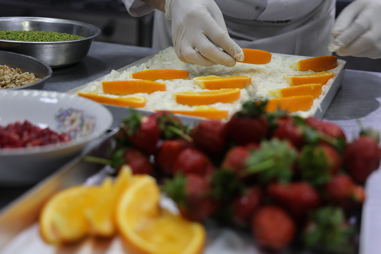 Yeni kuşağın bu tür tatlıları biraz daha sevdiğini anlatan İbrahim Taşdemir, "Güllacın içerisinde süt var, şeker ve olmazsa olmaz gül suyu var. İçerisinde ceviz, üzerinde ise meyve çeşitleri var. Portakal, nar, kivi ve çilek gibi meyvelerle süslenebilir. Her Ramazan bu lezzete talep oluyor, talepleri karşılamaya çalışıyoruz" dedi.